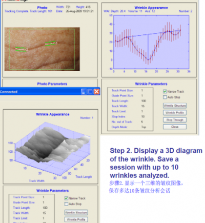 • 皺紋分析儀皺紋分析儀特點:1)非接觸測量,皺紋不變形( 測試方法更科學...